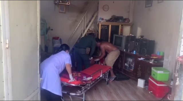 រហូតដល់ថ្ងៃទី ៩ វេលាម៉ោង ៩និង១០ នាទី ខែឆ្នាំដដែលគាត់ក៏បានចេញពីបន្ទប់ស្រាប់តែឃើញពូរបស់ខ្លួនកំពុងតែធ្វើសកម្មភាពយកកាំបិ-តចិតបន្លែយ-កមកអា- ក -ប៉ុនប៉ងសម្លា-ប់ខ្លួន ឃើញសភាពបែបនេះ គាត់ក៏បានស្រែកឲ្យអ្នកជិតខាងជួយនិងរាយការណ៍មកសមត្ថកិច្ចប៉ុស្តិ៍រដ្ឋបាល ព្រៃស ពេលដែលកម្លាំងសមត្ថកិច្ចប៉ុស្តិ៍នគរបាលរដ្ឋបាលព្រៃស ចុះទៅដល់ក៏បានឃើញជនរងគ្រោះនៅមានដង្ហើមក៏បានហៅរថយន្តសង្គ្រោះររបស់មន្ទីពេទ្យបង្អែកដង្កោទៅដឹកជនរងគ្រោះយកទៅសង្គ្រោះនៅឯមន្ទីរពេទ្យភ្លាមៗ។