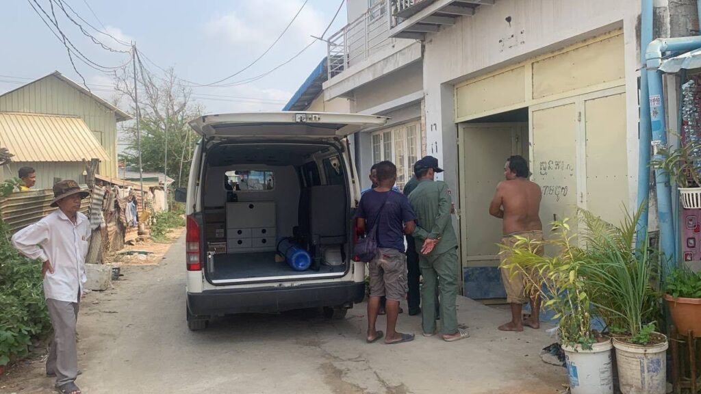ភ្នំពេញ ៖ បុរសម្នាក់ត្រូវបានរថយន្តសង្គ្រោះរបស់មន្ទីពេទ្យបង្អែកដង្កោដឹកទៅសង្គ្រោះអាយុជីវិតភ្លាមៗខណៈដែលបុរសរូបនោះបានយកកាំបិ-តចិ-តបន្លែយ-កមកអា- ក- ប៉ុនប៉ងសម្លា-ប់ខ្លួន ហេតុការណ៍នេះបង្កមានការភ្ញាក់ផ្អើលកាលពីវេលាម៉ោង ៩ និង ១០នាទី ព្រឹកថ្ងៃទី ៩ខែមេសាឆ្នាំ ២០២៤ ស្ថិតនៅភូមិព្រៃសខាងលិច សង្កាត់ព្រៃស ខណ្ឌដង្កោ រាជធានីភ្នំពេញ។