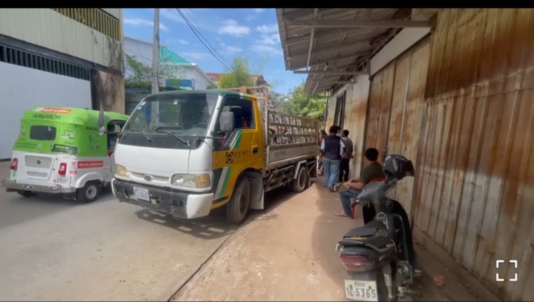 រថយន្តដឹកដែកដឹកធ្ងន់ពេកឡើងចំណោាទមិនរួចរអិលថយក្រោយបុកទ្វារផ្ទះនិងម៉ូតូកង់៣មួយគ្រឿងរងការខូចខាត…