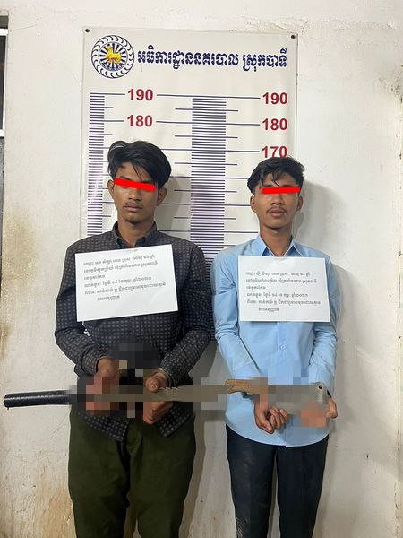 ខេត្តតាកែវ ៖ នៅវេលាម៉ោង២ និង០០នាទី រំលងអាធ្រាតថ្ងៃអង្គាទី ១៤ ខែកុម្ភៈ ឆ្នាំ២០២៣ កម្លាំងជំនាញ នៃអធិការដ្ឋាននគរបាលស្រុកបាទី សហការជាមួយកម្លាំងប៉ុស្ដិ៍នគរបាលរដ្ឋបាលចំបក់និងប្រជាការពារបានបានឃាត់ខ្លួនជនសង្ស័យចំនួន២ នាក់ជិះម៉ូតូមួយគ្រឿងម៉ាកស៊ុយសូគីនិច ពណ៌ខ្មៅ ពាក់ផ្លាកលេខ ភ្នំពេញ 1AJ-6901 ចំណុចស្ពានអន្លុងធន់ ស្ថិតក្នុងភូមិតានប់ ឃុំចំបក់ ស្រុកបាទី ខេត្តតាកែវ ដែលមានលាក់ កាំបិតតាំងតោចំនួន០១ដើម ប្រវែង ៣០សង់ទីម៉ែត្រនិងដាវសាំម៉ូរ៉ៃ កែច្នៃចំនួន០១ដើម ប្រវែង ៥៨ សង់ទីម៉ែត្រ នៅនឹងខ្លួនខណៈជនសង្ស័យកំពុងជិះម៉ូតូតាមផ្លូវ។ ជនសង្ស័យទាំង ០២នាក់ ខាងលើមាន៖