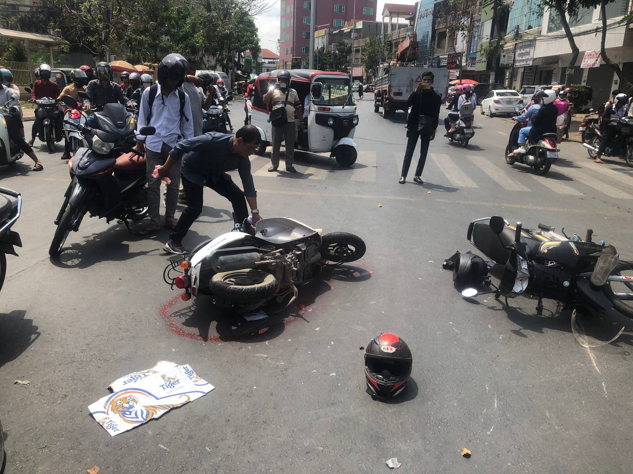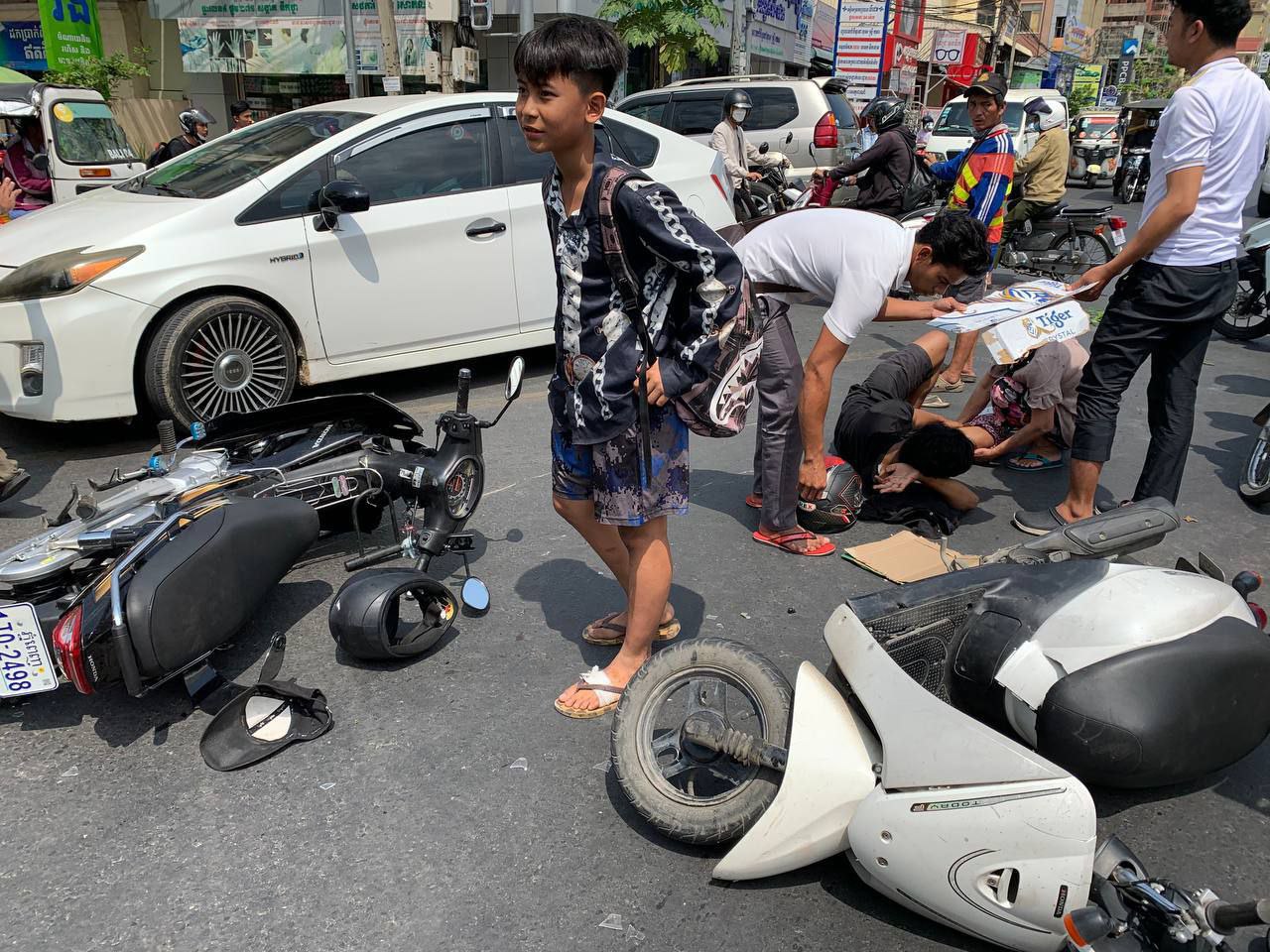 យោងតាមប្រភពព័ត៍មាននៅកន្លែងកើតហេតុបានឲ្យដឹងថា មុនពេលកើតហេតុគេឃើញយុវជនរងគ្រោះខាងលើជិះម៉ូតូមួយគ្រឿងម៉ាកហុងដាសេ១២៥ ព៍ណខ្មៅពាក់ផ្លាកលេខភ្នំពេញ1JQ-2498 ធ្វើដំណើរតាមបណ្តោយផ្លូវ២៧១ ក្នុងទិសដៅពីជើងទៅត្បូងខណ:មកដល់ចំនុចភ្លើងស្តុបស្រាប់តែមានបុរសម្នាក់ជិះម៉ូតូមួយគ្រឿងម៉ាកtodayព៍ណស ពាក់ផ្លាកលេខ ភ្នំពេញ1IE-1908 ធ្វើដំណើរបញ្រ្ចាសទិសដៅគ្នាពីត្បូងទៅជើង ហើយក៏បានបត់ឆ្វេងបុកចំជើងឆ្វេងយុវជនខាងលើបណ្តាលឲ្យរងរបួសបាក់ជើងត្រូវបានបញ្ជូនតាមម៉ូតូកង់ទៅធ្វើការសង្រ្គោះនៅមន្ទីរពេទ្យព្រះកុសុមះចំណែកម្ចាស់ម៉ូតូToday រងរបួសរលាត់ដៃជើង។