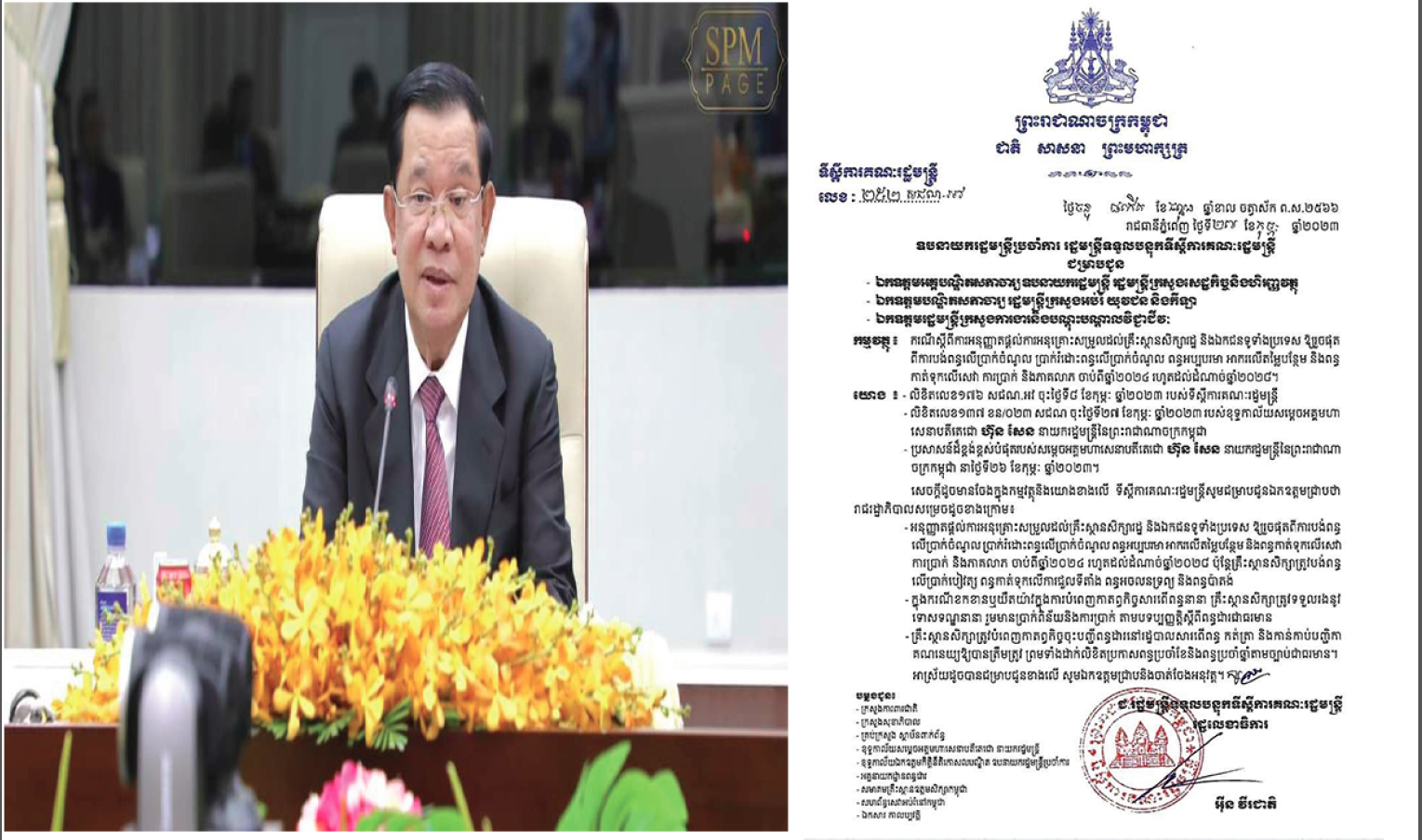 សូមអានលិខិតរបស់ទីស្ដីការគណៈរដ្ឋមន្ដ្រី ទាំងស្រុងដូចខាងក្រោម ៖