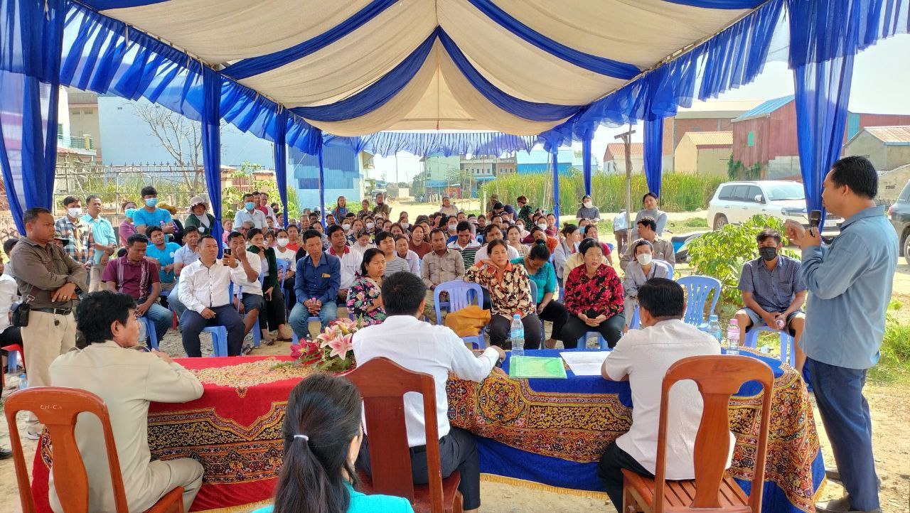 ភ្នំពេញ: ក្រោយពីប្រជាពលរដ្ឋភូមិព្រៃល្វា សង្កាត់ចោមចៅទី២ ខណ្ឌពោធិ៍សែនជ័យ ប្រតិកម្មរឿងអត់ចុះហត្ថលេខាលើលិខិតផ្ទេរសិទ្ធិនោះ នៅវេលាព្រឹកថ្ងៃទី៦ ខែមីនា ឆ្នាំ២០២៣ ។ រដ្ឋបាលខណ្ឌពោធិ៍សែនជ័យ ដឹកនាំដោយលោកអភិបាលខណ្ឌ សក់ ច័ន្ទកញ្ញារិទ្ធិ បានបើកធ្វើវេទិការសាធារណៈមួយដើម្បីដោះស្រាយបញ្ហាដែលបានកើតឡើងដោយការភាន់ច្រឡំ។