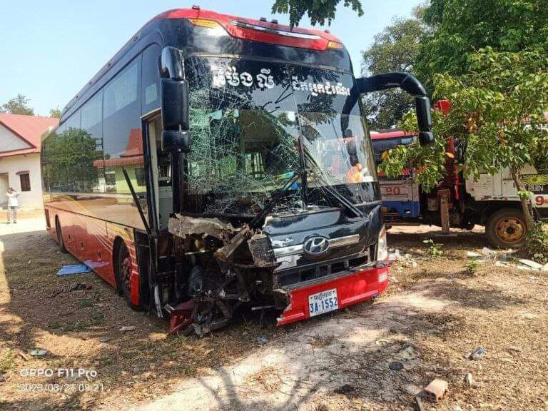 ប្រភពព័ត៌មានពីកន្លែងកើតហេតុបានឲ្យដឹថា មុនពេលកើតហេតុមានរថយន្តមួយគ្រឿងម៉ាកតូយ៉ូតាត្រៃតុន ពាក់ស្លាកលេខខេមរភូមិន្ទ 02 .0830 បើកបរដោយជនមិនស្គាល់អត្តសញ្ញាណ បើកបរក្នុងទិសដៅពីជើង ទៅត្បូង លុះពេលមកដល់ចំណុចកើតហេតុបានបុកជាមួយនឹងរថយន្តក្រុងរបស់ក្រុមហ៊ុន ម៉េង លី ពណ៌ក្រហម ពាក់សាកលេខសៀមរាប3A.1552 បណ្តាលឲ្យមនុស្ស២នាក់បានស្លាប់និង១១នាក់រងរបួសធ្ងន់ស្រាល ។