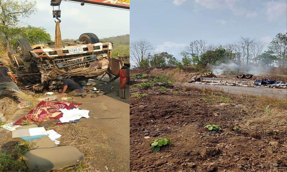 គ្រោះថ្នាក់ចរាចរណ៍ក្រឡាប់រថយន្តសណ្តោងរ៉ឺម៉កបណ្តាលឲ្យស្លា_ប់អ្នកបើកបរម្នាក់និងស្ត្រីរួមដំណើរជាមួយម្នាក់…