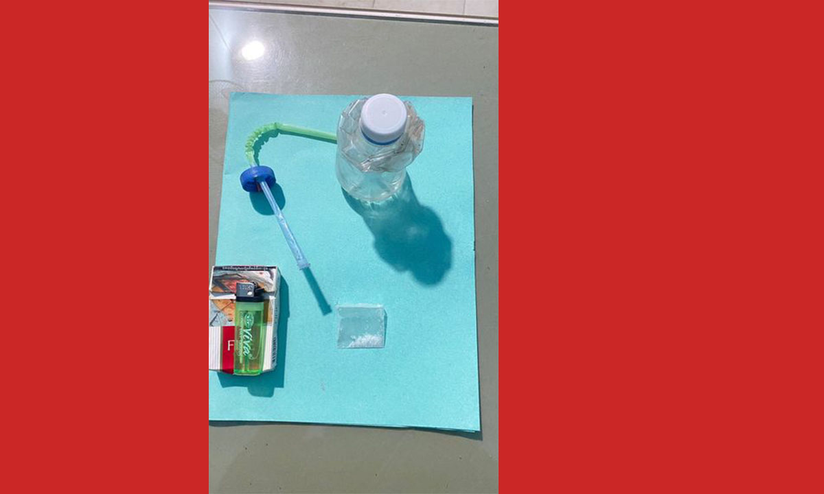 ក្នុងនោះឆែកឆេររកឃើញមានម្សៅក្រាមថ្លាព៌ណសចំនួន០១កញ្ចប់នៅ នឹងខ្លួនរបស់ជនសង្ស័យ រួមទាំងឧបករណ៍សំរាប់ប្រើប្រាស់ថ្នាំញៀនមួយ ចំនួនទៀត រួមទាំងម៉ូតូ០១ គ្រឿងម៉ាកExciter។