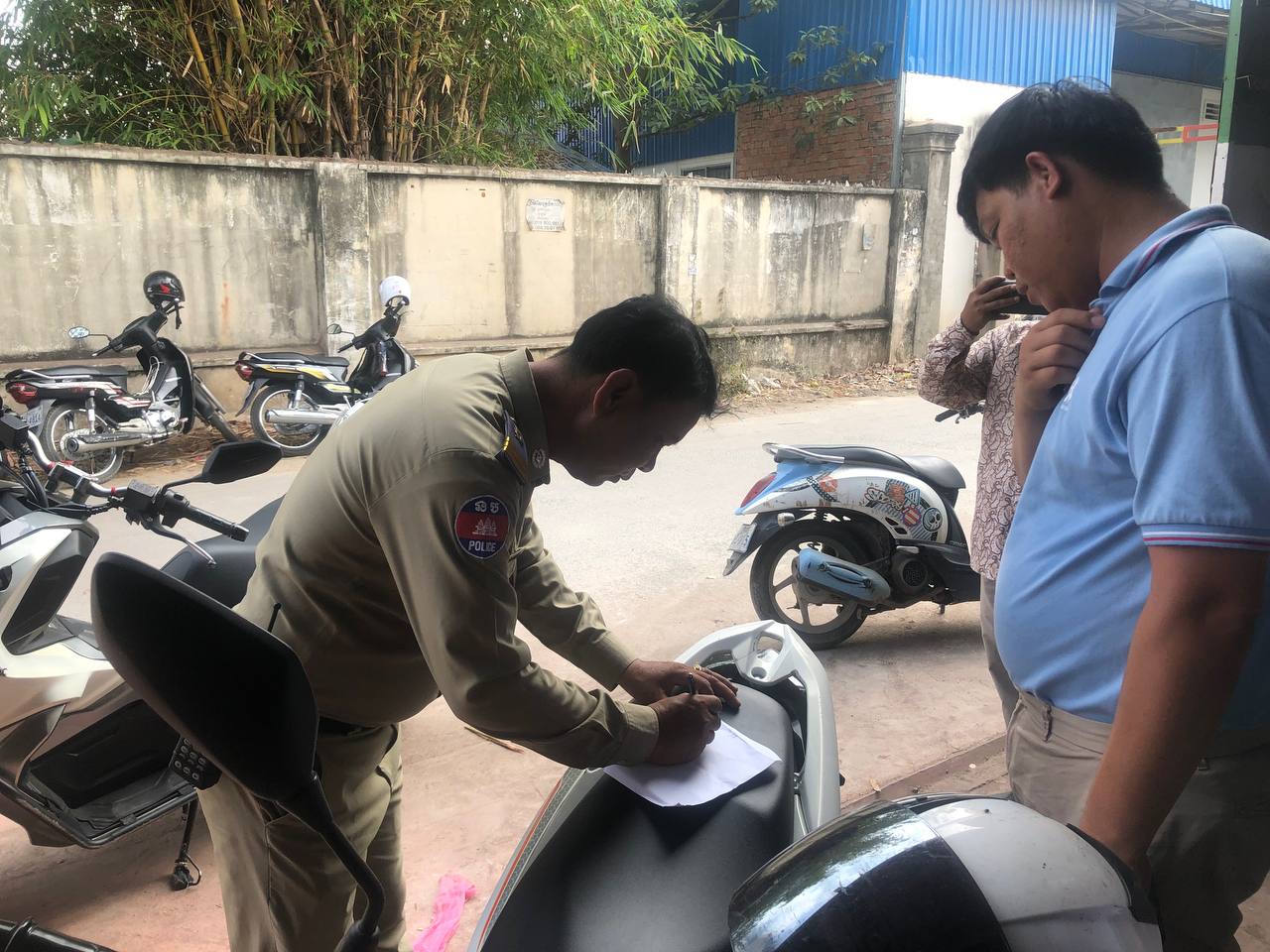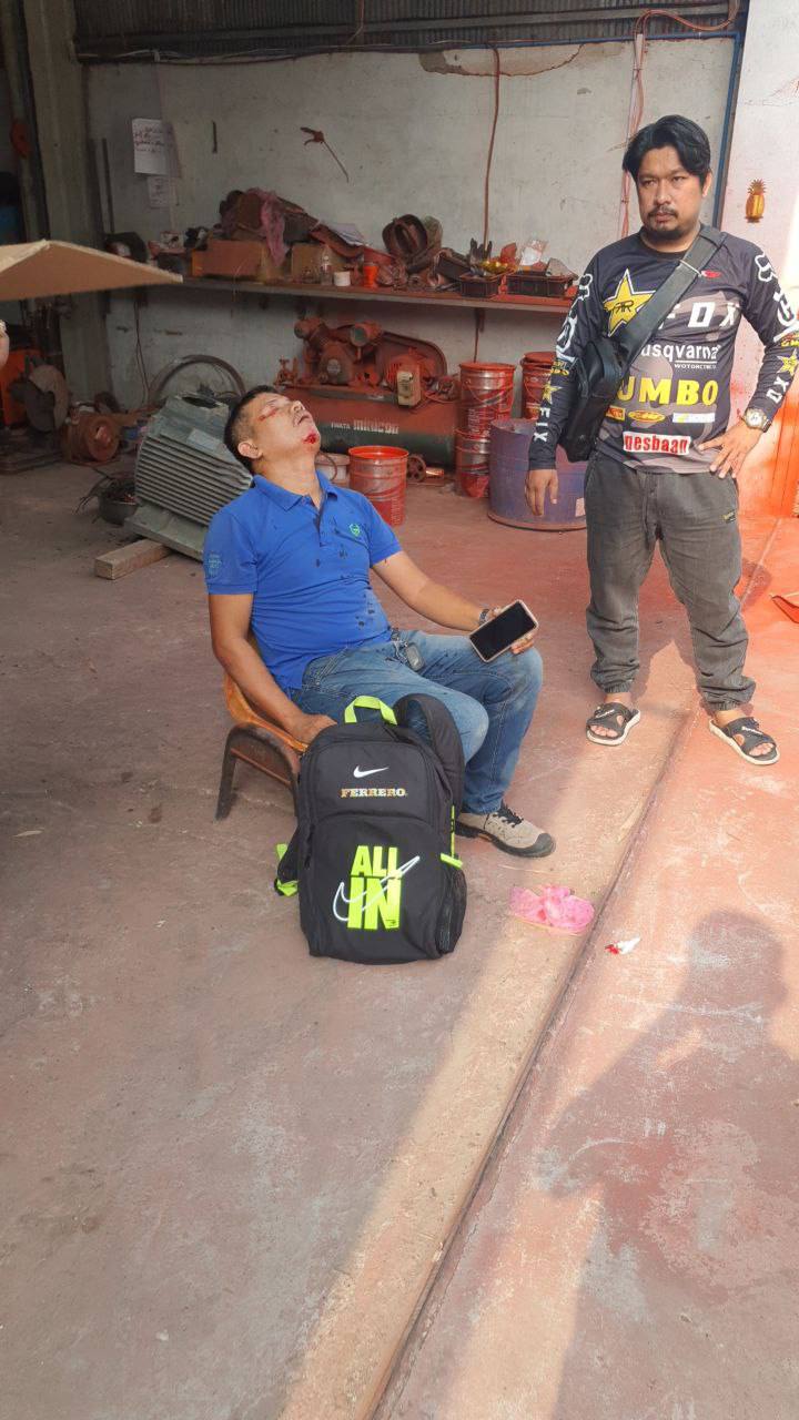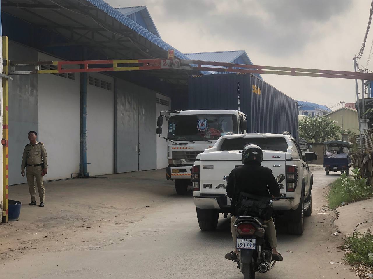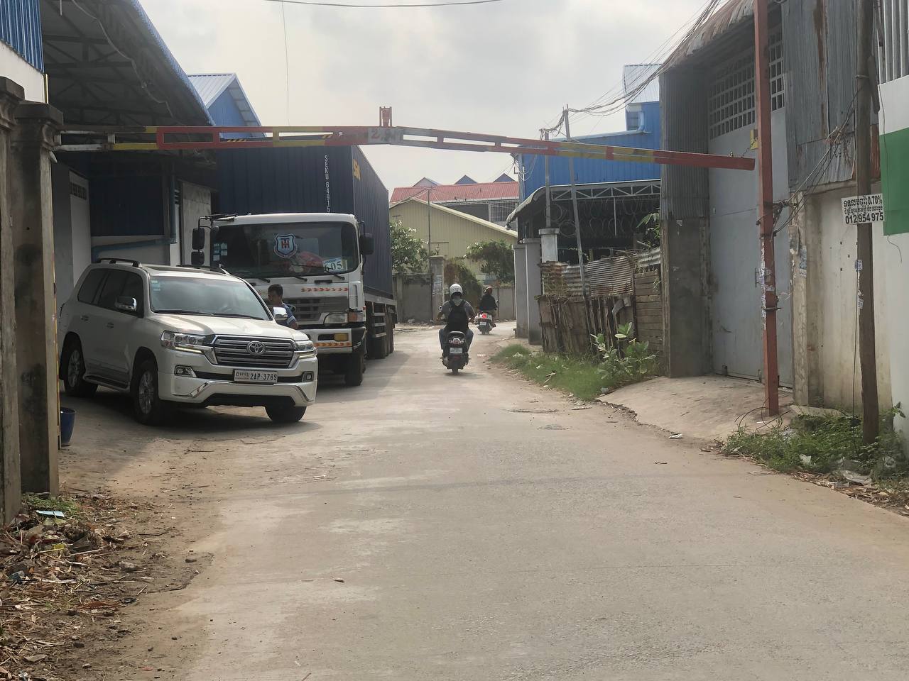 តីន័ររបស់ក្រុមហ៊ុនគាត់ចូលដាក់ទំនិញនៅក្នុងឃ្លាំងរបស់គាត់ ហើយក៏បានឲ្យសន្តិសុខបិទប៉ារ៉ាស់វិញ ស្របពេលនោះក៏មានបុគ្គលិករបស់ក្រុមហ៊ុនឯកជនមួយក្រុមជិះម៉ូតូឆ្លងកាត់បារ៉ាស់ខាងលើ ខណ:ជិះមកដល់ចំនុចកើតហេតុច្រវ៉ាកសម្រាប់ទាញបិទបារ៉ាស់ក៏បានរបូតបណ្តាលឲ្យធ្លាក់បារ៉ាស់ដែកត្រូវអ្នកជិះម៉ូតូ២នាក់រងរបួសធ្ងន់ម្នាក់និងស្រាលម្នាក់។