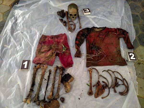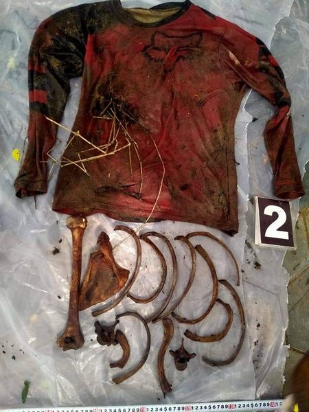 កើតហេតុសមត្ថកិច្ចរកឃើញខោខ្លីពណ៌ក្រហមមានគ្រោងឆ្អឹងជើងមួយចំនួននិងរកឃើញអាវយឺតដៃវែងពណ៌ក្រហមលាយខ្មៅមានគ្រោងឆ្អឹងជំនីនិងដៃមួយចំនួន នៅក្នុងទឹកមានលលាដ៏ក្បាលស-ពមិនមានស្លាកស្នាមអ្វីទេ។