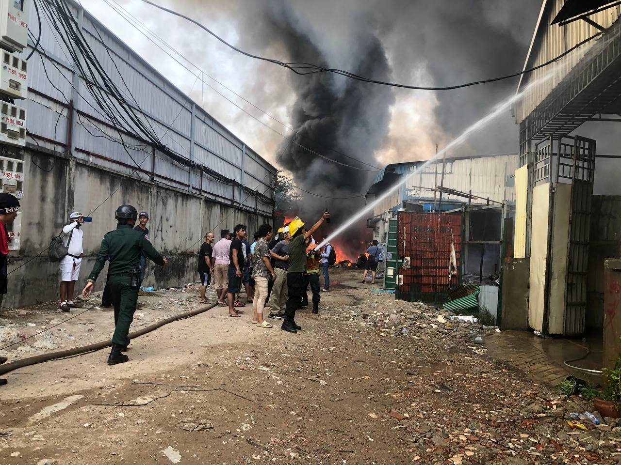 ឆេះឃ្លាំងអេតចាយរាលដាលឆេះផ្ទះប្រជាពលរដ្ឋ៨ខ្នងផ្អើលពេញខណ្ឌមានជ័យ…