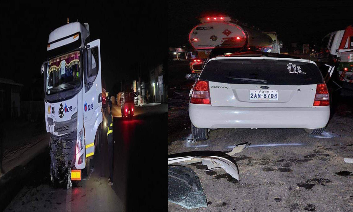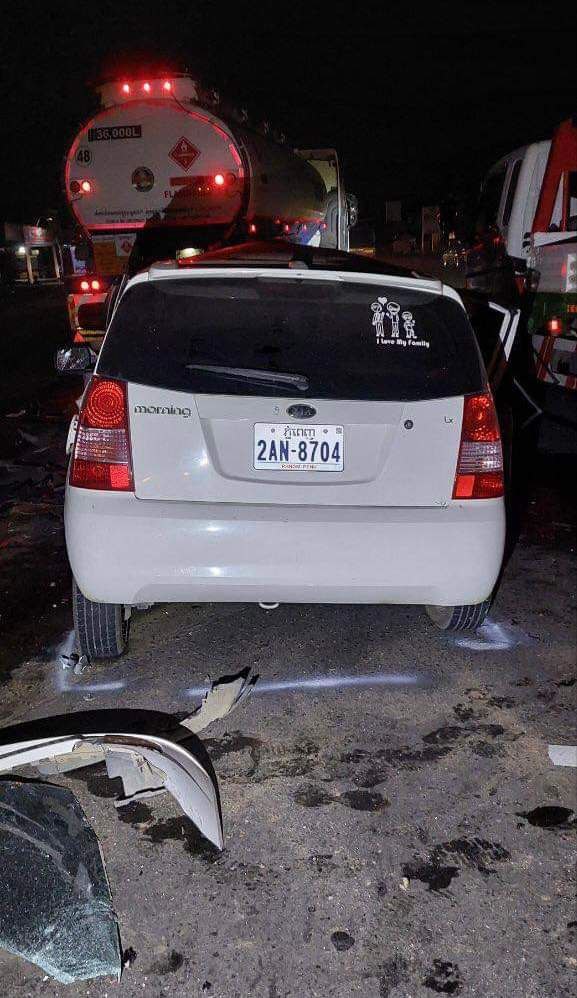 កំពង់ស្ពឺ- នៅវេលាម៉ោង ០០:៤០ នាទីនាយប់ថ្ងៃទី០៦ខែឧសភាឆ្នាំ២០២៣ នៅលើកំណាត់ផ្លូវជាតិលេខ 4ចន្លោះម៉ែត្រ( 3 6-37) ត្រង់ចំណុចភូមិព្រៃផ្ដៅ ឃុំត្រពាំងគង ស្រុកសំរោងទង មានរថយន្ដ1គ្រឿងម៉ាក KIA morning ពណ៌ស ពាក់ស្លាកលេខភ្នំពេញ 2AN-8704 អ្នក បើ កបរឈ្មោះ យឹម ពិសិដ្ឋ ប្រុស អាយុ35ឆ្នាំនៅភូ មិចំការកួយ ឃុំព្រៃពួច ស្រុកអង្គស្នួល ខេត្តកណ្ដា ល បើកបរពីទិសខាងលិចទៅទិសខាងកើត លុះមក ដ ល់ចំណុចខាងលើបាន បានប៉ះជាមួយរថ យ ន្ដ1 គ្រឿ ងម៉ាក CHENG LONG ពណ៌ស ពាក់ ស្លាក លេខ ភ្នំពេញ 3E-4903 សណ្ដោងសឺមីរ៉ឺម៉ក ស្លាក លេខភ្នំពេញ 4A-5274អ្នកបើកបរមិនស្គាល់អត្ដ សញ្ញាណ គេចខ្លួនក្រោយពេលកើត ហេ តុ ។ក្នុងហេតុការណ៍ខាងលេី សមត្ថកិច្ចនគរបាលបាន ឱ្យដឹងថារថយន្ដទាំង០២គ្រឿងបេីកបរក្នុងទិសដៅ បញ្រ្ចាសគ្នាដោយសារតែ រថយន្ដ KIA morning ជាប្រភេទរថយន្ដតូច បុកបានបណ្ដាលឱ្យ ខ្ទេចរងការខូចខាតខ្លាំងជាងរថយន្ដ CHENG LO N G ដែលជារថយន្ដដឹក ប្រេងឥន្ធនៈ ក្រុមហ៊ុន PTT អ្នកបើកបររថយន្ដ KIA morning រងរបួស ជាទម្ងន់ ។ បច្ចុប្បន្ន សមត្ថកិច្ច នគរបាល បានយករថយន្ដ ទាំង ០ ២ គ្រឿង យកមករក្សាទុកបណ្ដោះអាសន្ន នៅអធិការដ្ឋាន នគរបាល ស្រុក សំរោងទង ដើម្បី កសាងសំណុំរឿង ចំណាត់ការ នីតិវិធី បន្ដ ៕