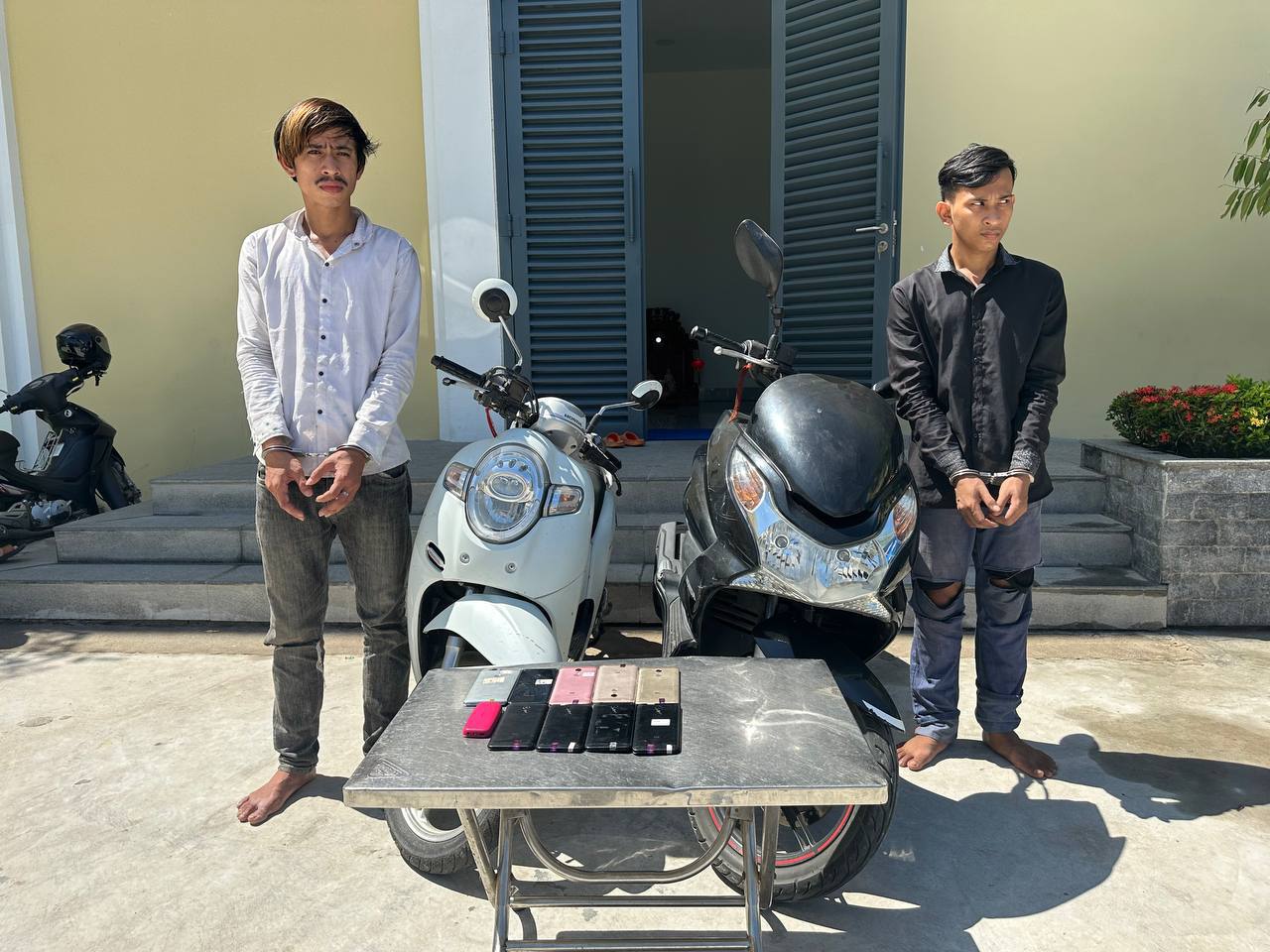 ភ្នំពេញ -នៅថ្ងៃទី១៤ ខែឧសភា ឆ្នាំ២០២៣ វេលាម៉ោង ១១ និង ៣០ នាទី កម្លាំងជំនាញរបស់ការិយាល័យបានស្រាវជ្រាវឃាត់ខ្លួនជនសង្ស័យចំនួន ០២ នាក់ នៅចំណុចផ្ទះជួល ផ្លូវមិនចាំលេខ សង្កាត់ផ្សារថ្មី៣ ខណ្ឌដូនពេញ រាជធានីភ្នំពេញ ពាក់ព័ន្ធប្រព្រឹត្តបទល្មើស គាស់ទម្លុះទម្លាយ (ឆ្កឹះសោទ្វារផ្ទះចូលលួចយកម៉ូតូចំនួន០២គ្រឿងម៉ាកហុងដាSCoopy-I ពណ៌ ស សេរីឆ្នាំ២០១៩ ពាក់ផ្លាកលេខ ភ្នំពេញ1IQ-5922, ម៉ូតូម៉ាកហុងដាPCX ពណ៌ខ្មៅ សេរីឆ្នាំ២០១១ ពាក់ផ្លាកលេខ ភ្នំពេញ1IF-5797និង ទូរសព្ទ័ដៃចម្រុះម៉ាកចំនួន១០គ្រឿង) ប្រព្រឹត្តនៅចំណុចផ្ទះលេខ៤៣ដេ ផ្លូវលេខ៧០ ភូមិ១៩ សង្កាត់ស្រះចក ខណ្ឌដូនពេញ កាលពីថ្ងៃទី០៤ ខែឧសភា ឆ្នាំ២០២៣ វេលាម៉ោង ២២ និង០០ នាទី ។