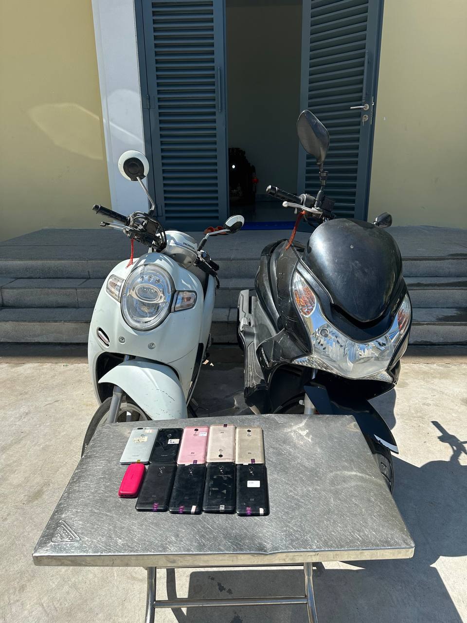 -ទូរសព្ទ័ដៃចំនួន ០៩ គ្រឿងមាន ទូរស័ព្ទដៃម៉ាក mi (មី) ពណ៌ ខ្មៅ (គ្មានស៊ីម) ចំនួន ០៤ គ្រឿង ,ទូរស័ព្ទដៃម៉ាកmi (មី) ពណ៌ ទឹកមាស (គ្មានស៊ីម)ចំនួន០២ គ្រឿង ,ទូរស័ព្ទដៃ ម៉ាកmi(មី) ពណ៌ផ្កាឈូក(គ្មានស៊ីម) ចំនួន ០១ គ្រឿង ,ទូរស័ព្ទដៃម៉ាកhonor ពណ៌ទឹកប្រាក់ (គ្មានស៊ីម) ចំនួន០១ គ្រឿង,ទូរស័ព្ទដៃម៉ាកhonor ពណ៌ ខ្មៅ (គ្មានស៊ីម) ចំនួន ០១ គ្រឿង ។