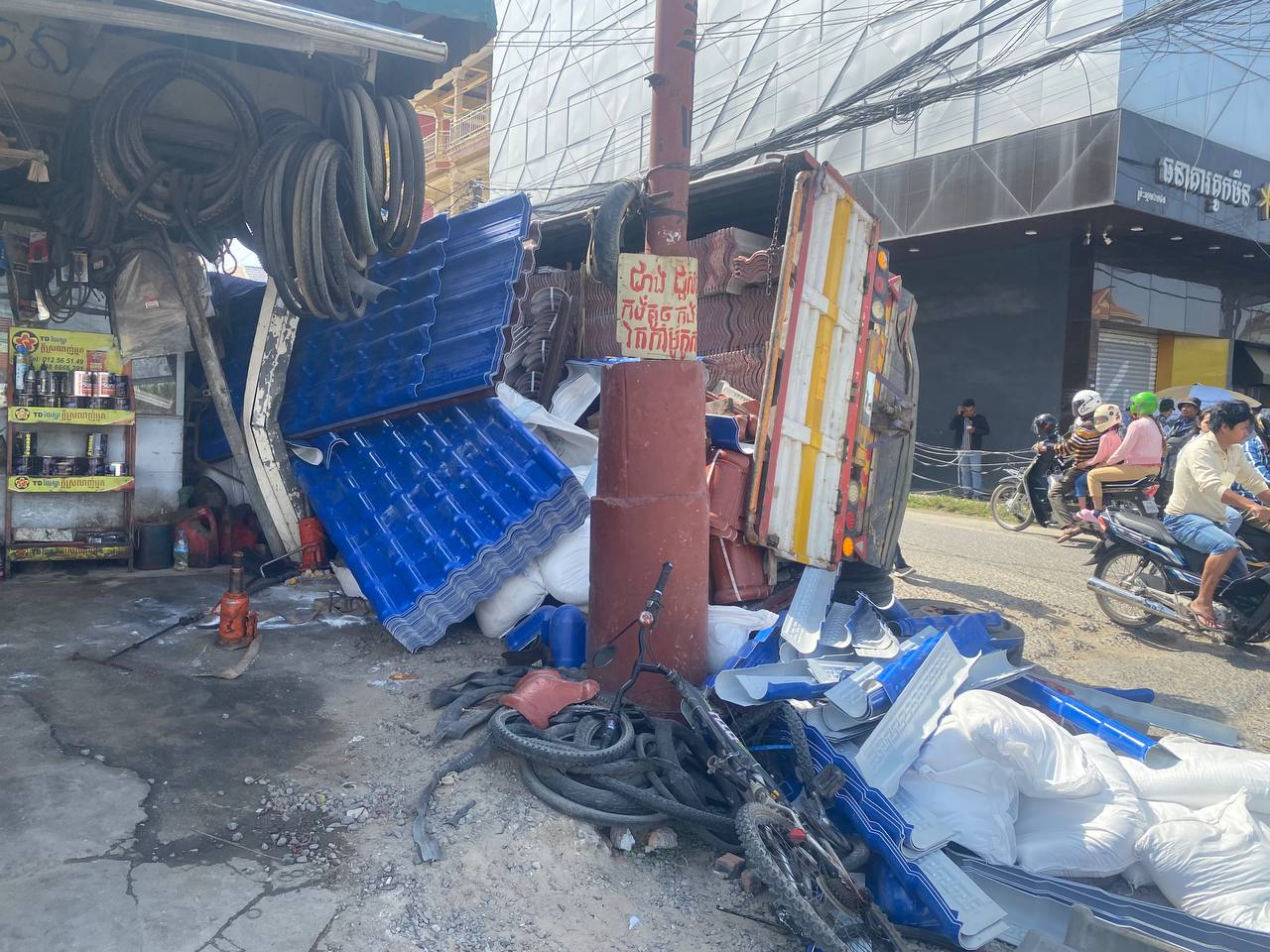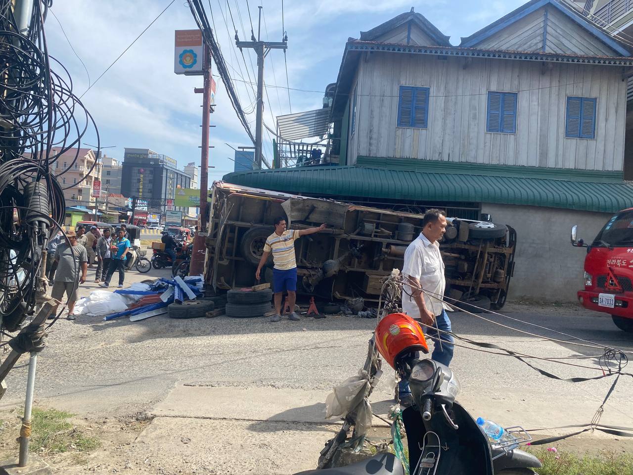 តាមការរៀបរាប់ពីអ្នកបើកបររថយន្តឈ្មោះ ប៉ែន សុនដារ៉ា អាយុ៤០ឆ្នាំ មុខរបរបើកបររថយន្តខាងលើបានឲ្យដឹងថា មុនពេលកើតហេតុរូបគាត់បានមកដឹកគ្រឿងសំណង់នៅម្តុំវត្តតាំងក្រសាំង ខណ្ឌពោធិសែនជ័យ យកទៅបោះឲ្យម៉ូយនៅខេត្តតាកែវ ដោយដឹកតាមរថយន្តប្រភេទដឹកទំនិញម៉ាកហ៊ីយ៉ាន់ដាយមួយគ្រឿងព៍ណស ពាក់ផ្លាកលេខ តាកែវ3A-3768បើកបរក្នុងទិសដៅពីលិចទៅកើតតាមបណ្តោយផ្លូវជាតិលេខ៤បម្រុងបត់ស្តាំតាមផ្លូវបេតុងចេញមកផ្លូវជាតិលេខ៣ ខណ:ពេលកំពុងតែបើកឡើងទួល ដោយរថយន្តដឹកធ្ងន់ពេកក៏បានបាក់ប៉ុងភ្លៅខាងក្រោយ ដោយស្ថានភាពយប់ពេក អ្នកបើកបរក៏ទុករថយន្តហើយដេកចាំនៅទីនោះអស់មួយយប់លុះព្រឹកឡើងក៏បានប្រជាការពារដែលស្គាល់ជាងបានជួយហៅជាងទាំង២នាក់នោះមកជួសជុលរថយន្តដែលខូចខាងលើនេះ ហើយអ្នកបើកបរបានជិះម៉ូតូឌុបទៅទិញគ្រឿងបន្លាស់ ដើម្បីឲ្យជាងផ្លាស់ប្តូរ ខណ:ជាងទាំង២នាក់កំពុងតែយកប្រដាប់ដូយរថយន្តមកដូយកង់រថយន្តនៅផ្នែកខាងក្រោយដើម្បីចូលទៅដោះប៉ុងភ្លៅរថយន្តនៅខាងក្រោមរថយន្ត បណ្តាលឲ្យផ្អៀងមួយជំហៀងផ្នែកខាងឆ្វេងក្រឡាប់សង្កត់ជាងទាំងពីរនាក់គៀបជាប់រងរបួសធ្ងន់ត្រូវបានប្រជាពលរដ្ឋរួមនិងអ្នកដំណើរជួយទាញយកជនរងគ្រោះទាំងពីរនាក់ចេញពីក្រោមរថយន្តរួចបញ្ជូនទៅកាន់មន្ទីរពេទ្យដើម្បីធ្វើការសង្រ្គោះភ្លាម ។ ចំណែកម៉ូតូដែលជារបស់ជាងរថយន្តរងការខូចខាតដោយរថយន្តសង្កត់លើនិងរងការខូចខាតផ្ទះជាងជួសជុលម៉ូតូយ៉ាងដំណំផងដែរ។