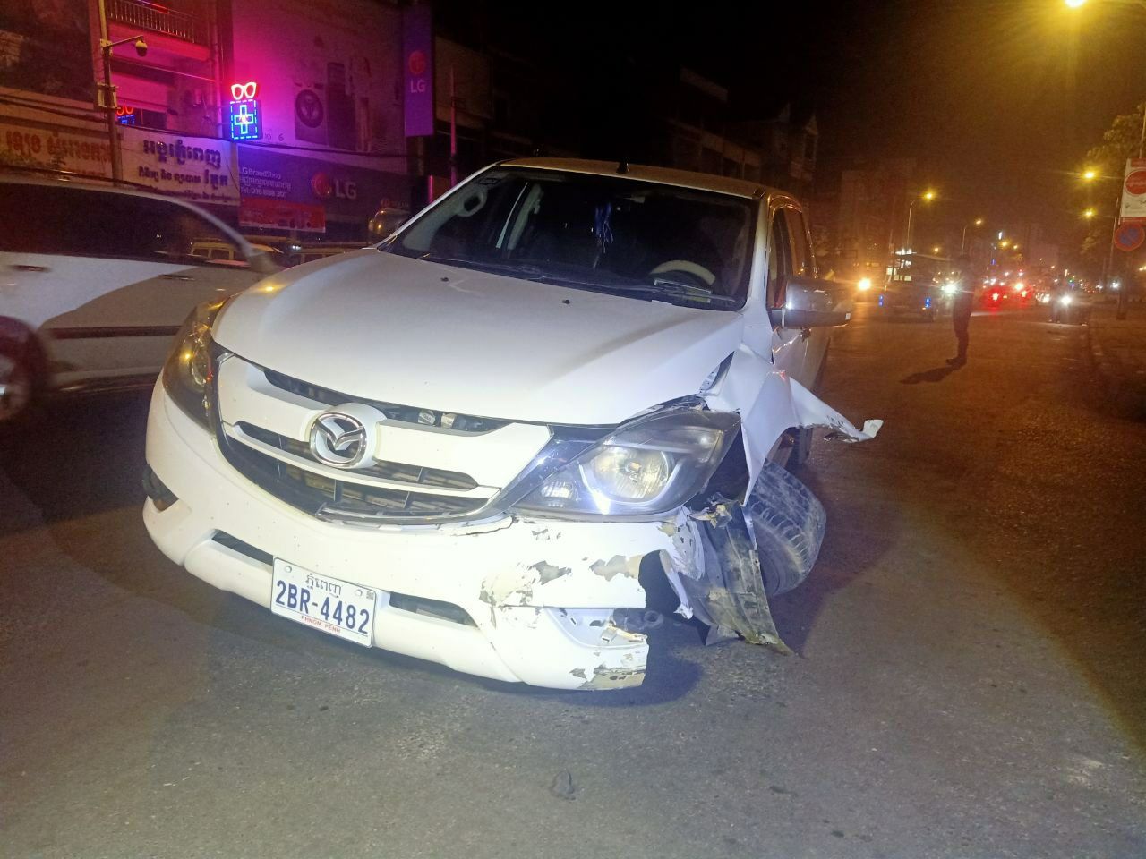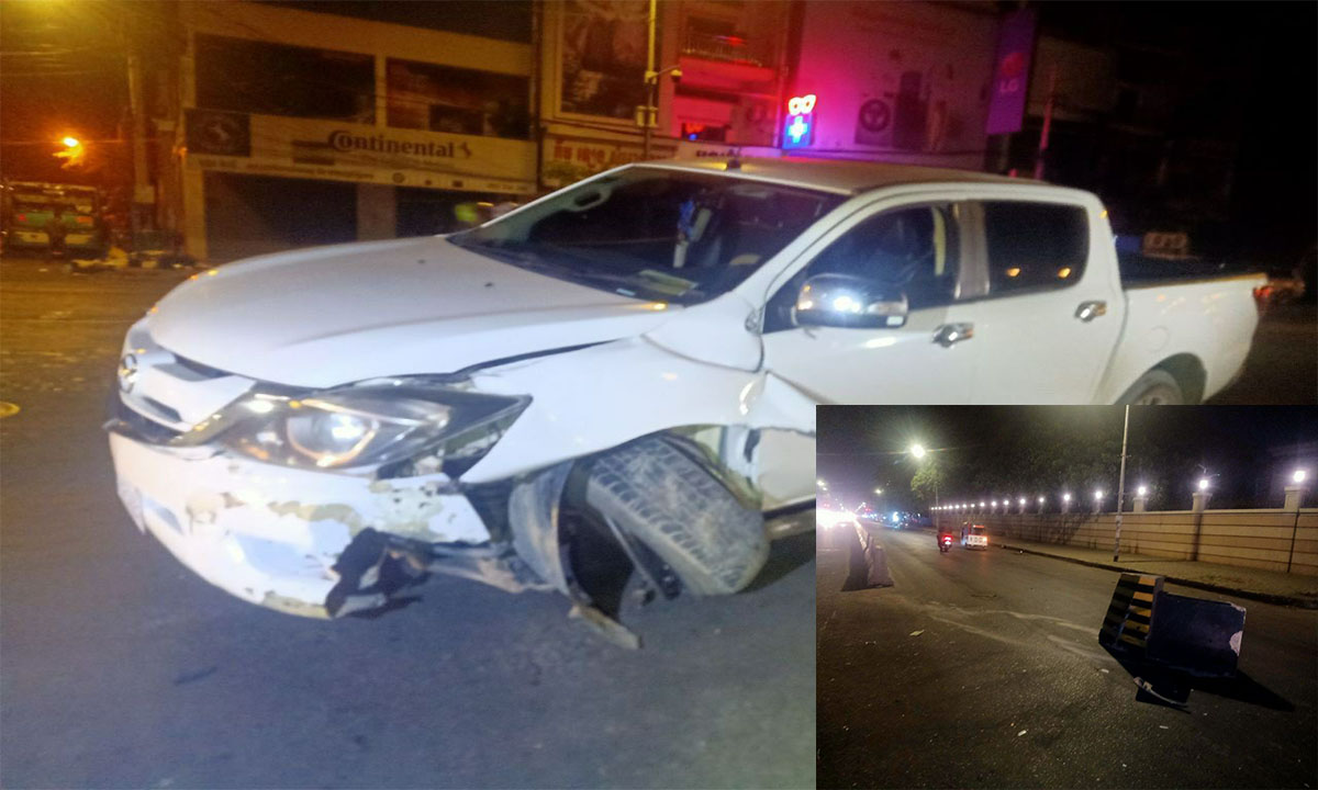 ហេតុការណ៍នេះកើតឡើងកាលពីវេលាម៉ោង២ និង១០ នាទីយប់រំលងអាធ្រាត្រឈានចូលថ្ងៃទី ២៧ ខែធ្នូ ឆ្នាំ ២០២២ នៅខាងលិចស្តុបចេនឡា តាមបណ្តោយផ្លូវព្រះមុន្នីរ៉េត(២១៧)ស្ថិតក្នុងសង្កាត់បឹងសាឡាង ខណ្ឌទួលគោករាជធានីភ្នំពេញ។តាមប្រភពព័ត៌មានពីកន្លែងកើតហេតុបានហើយដឹងថាមុនពេលកើតហេតុគេឃើញបុរសនារីពីរនាក់ បើករថយន្តម៉ាក ម៉ាស្តាមួយគ្រឿងពណ៌ស ពាក់ស្លាកលេខភ្នំពេញ2BR-4482 ធ្វើដំណើរទិសដៅពីកើតទៅលិច ក្នុងល្វឿនលឿន លុះមកដល់ចំណុចកើតហេតុខាងលើដោយខ្វះការប្រុងប្រយ័ត្ន បានរេចង្កូតទៅខាងឆ្វេងដៃជ្រុលទៅបុករបាំងថ្មពុះចែកទ្រូងផ្លូវពេញទំហឹងបណ្តាលអោយរបាំងថ្មមួយកង់ខ្ទៀត មកកណ្ដាលផ្លូវចំណែករថយន្តបង្កមិនទាន់អស់ល្បឿនបានបន្តទៅមុខប្រមាណជិត៣០ ម៉ែត្រដាច់ក្រឡេកង់ខាងមុខផ្នែកខាងឆ្វេងទៅមុខលែងរួច។ក្រោយកើតហេតុសមត្ថកិច្ចមូលដ្ឋានបានចុះមកដល់ហើយទំនាក់ទំនងទៅសមត្ថកិច្ចជំនាញចុះមកធ្វើការវាស់វែងយករថយន្តបង្កទៅរក្សាទុកនៅការិយាល័យចរាចរណ៍ផ្លូវគោកនៃស្នងការដ្ឋាននគរបាលរាជធានីភ្នំពេញរង់ចាំធ្វើការដោះស្រាយគ្នាតាមផ្លូវច្បាប់៕