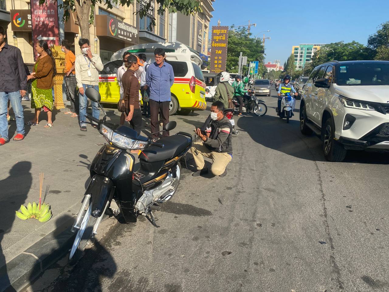 ភ្នំពេញ–បុរសម្នាក់ បានស្លា.ប់បាត់បង់ជីវិត ចោលប្រពន្ធ និង កូនពីរនាក់ យ៉ាងអណោចអធ័មទាំងព្រឹក ខណះដែលរូបគាត់ជិះម៉ូតុម៉ាក ហុងដា C125 មួយគ្រឿង ក៏ត្រូវរថរន្តមិនស្គាល់ម៉ាកមួយគ្រឿងបើកបោះពួយមកបុកពីក្រោយរួចហើយបើករត់គេចខ្លួនបាត់ស្រមោល។ករណីគ្រោះថ្នាក់ចរាចរណ៍នេះដែរបានកើតឡើងកាលពីវេលាម៉ោង ៧ និង ១៥នាទីព្រឹក ថ្ងៃទី ២៨ ខែ ធ្នូ ឆ្នាំ ២០២២ នៅចំណុចខាងជើងស្ពានអាកាសក្បាលថ្នល់ ផ្លូវព្រះនរោត្តម ក្នុងសង្កាត់ទន្លេបាសាក់ ខណ្ឌចំការមន រាជធានីភ្នំពេញ