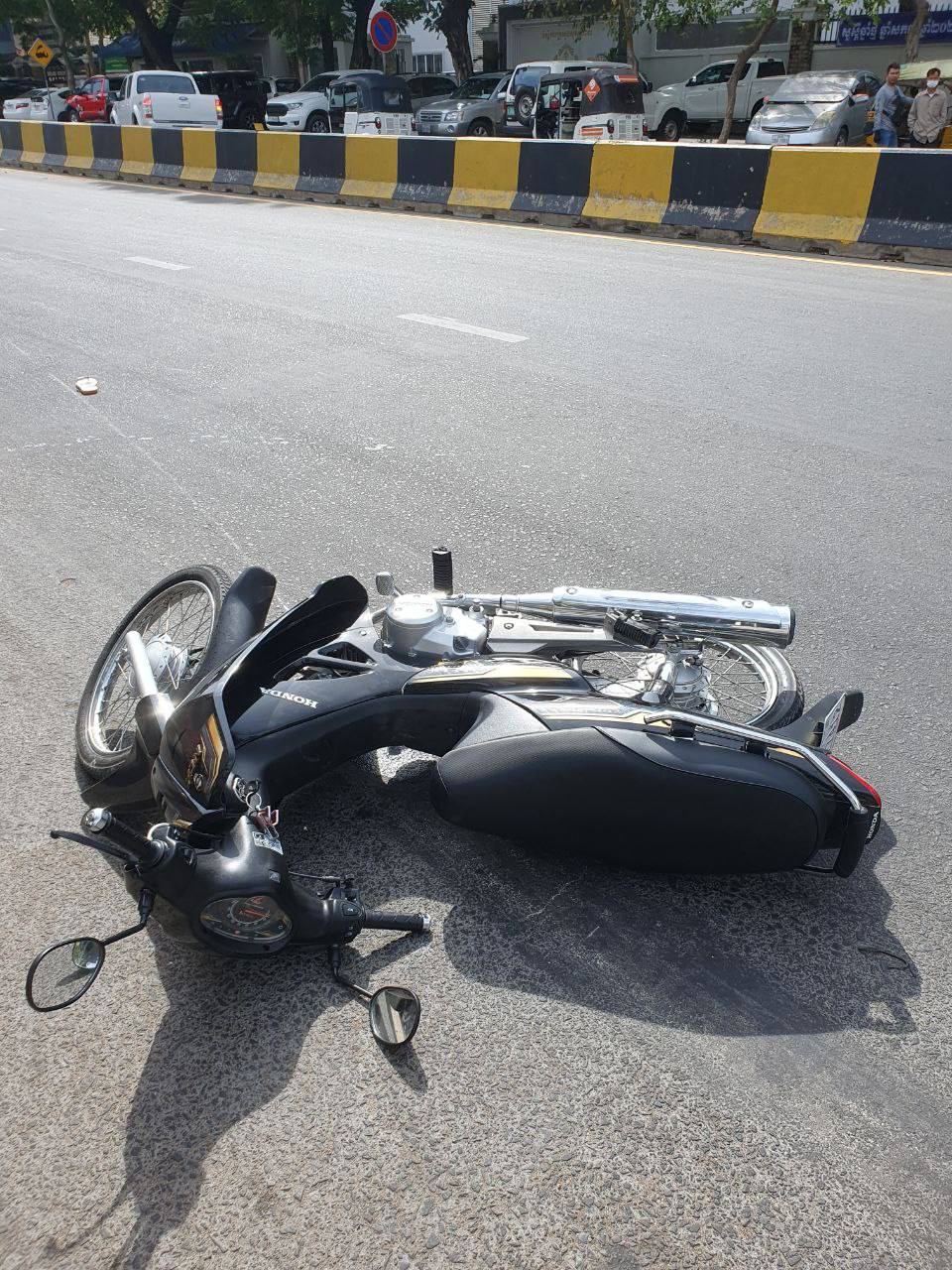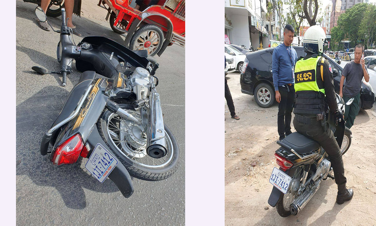 ភ្នំពេញ-ចោរឆក់មួយក្រុមរត់ចោលម៉ូតូហុងដាសេ១២៥ ពណ៍ខ្មៅពាក់ផ្លាកលេខភ្នំពេញ1JI-7412 បន្ទាប់ពីធ្វើសកម្មភាពឆក់កាបូបពីជនរងគ្រោះម្នាក់មិនបានសម្រេច ខណ:ពេលអ្នកបើកកង់បីឃើទាន់បានបើកកង់បីគៀបុកបណ្តាលឲ្យដួលម៉ូតូ ហើយជនសង្ស័យបានឡើងម៉ូតូបក្ខមួយគ្រឿងទៀតជិះរត់គេចខ្លួនបាត់ស្រមោលតែម្តង។